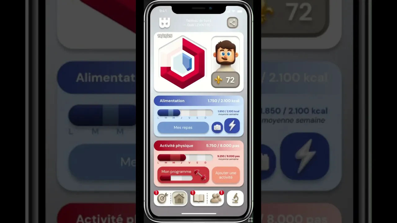 L’objectif était de concevoir une application mobile de coaching santé complète, combinant activité physique, nutrition et gamification, afin d’améliorer durablement l’engagement et les résultats des utilisateurs.